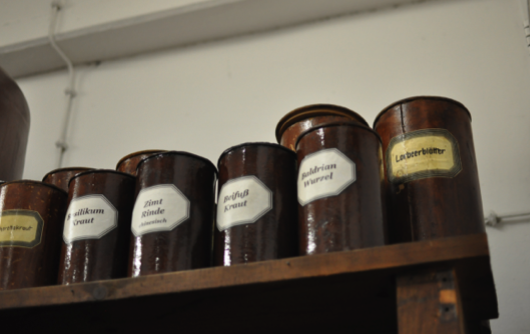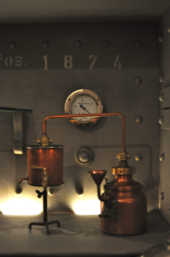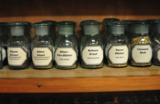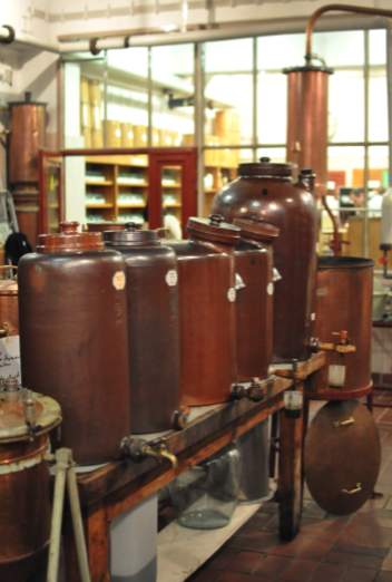 Below are a few pictures I took of the lab/production space where they concocted these amazing drinks using a process that is practiced by almost no one else around the world. I was in love with all the medicine jars filled with raw ingredients and distilled flavors, not to mention the big suitcase of pretzels that was waiting for us when we got there. They even let us big an enormous ladle into an enormous ceramic storage container to sample their 500€-a-bottle gin. A truly fascinating, delicious and boozy experience. And I knew that Tereasa would love that their entire creation process takes happens in turn-of-the-century hardware and vintage glassware. Also adding to the charm was that it was run by an ex-chemistry professor named Dr. Ulf Stahl who personally oversees the creation of their unique and special liquors.