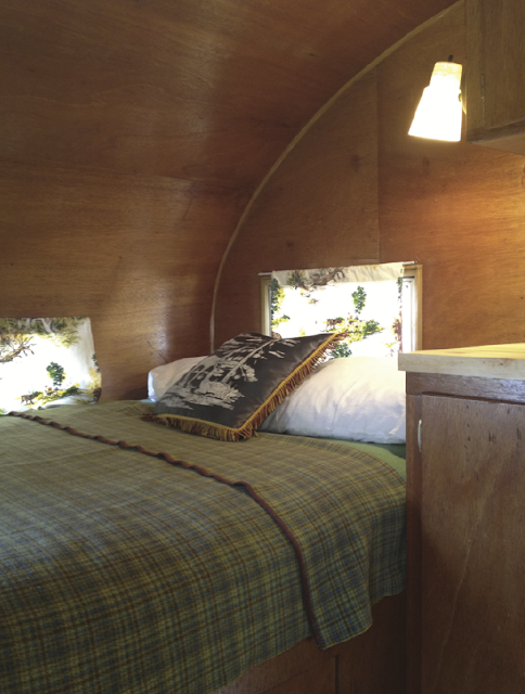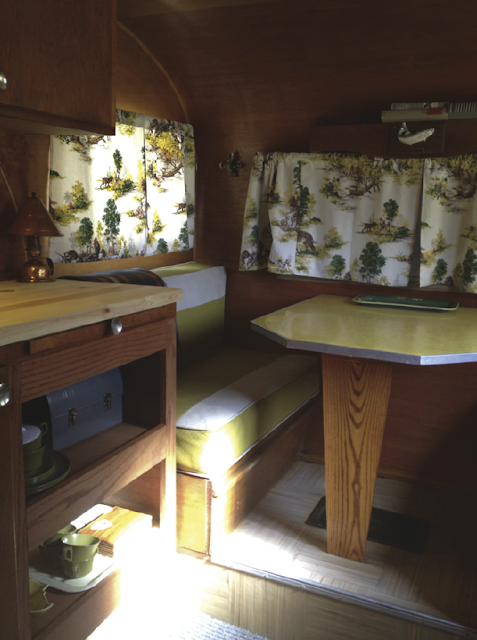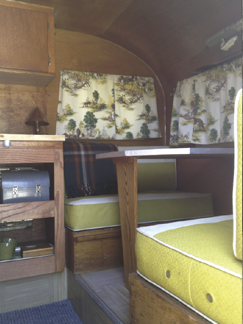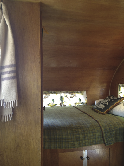* found (finally!) a 1950s green/yellow/brown camp blanket to match the curtains (on ebay)