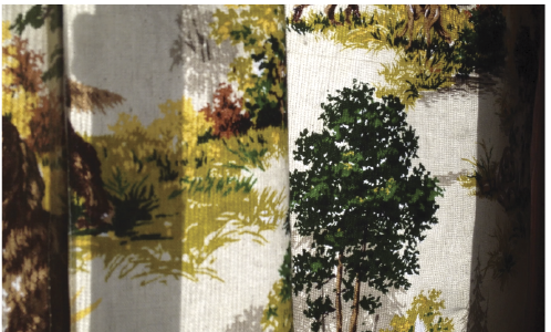 * custom curtains (from 1950s hunting dog themed barkcloth from ebay)